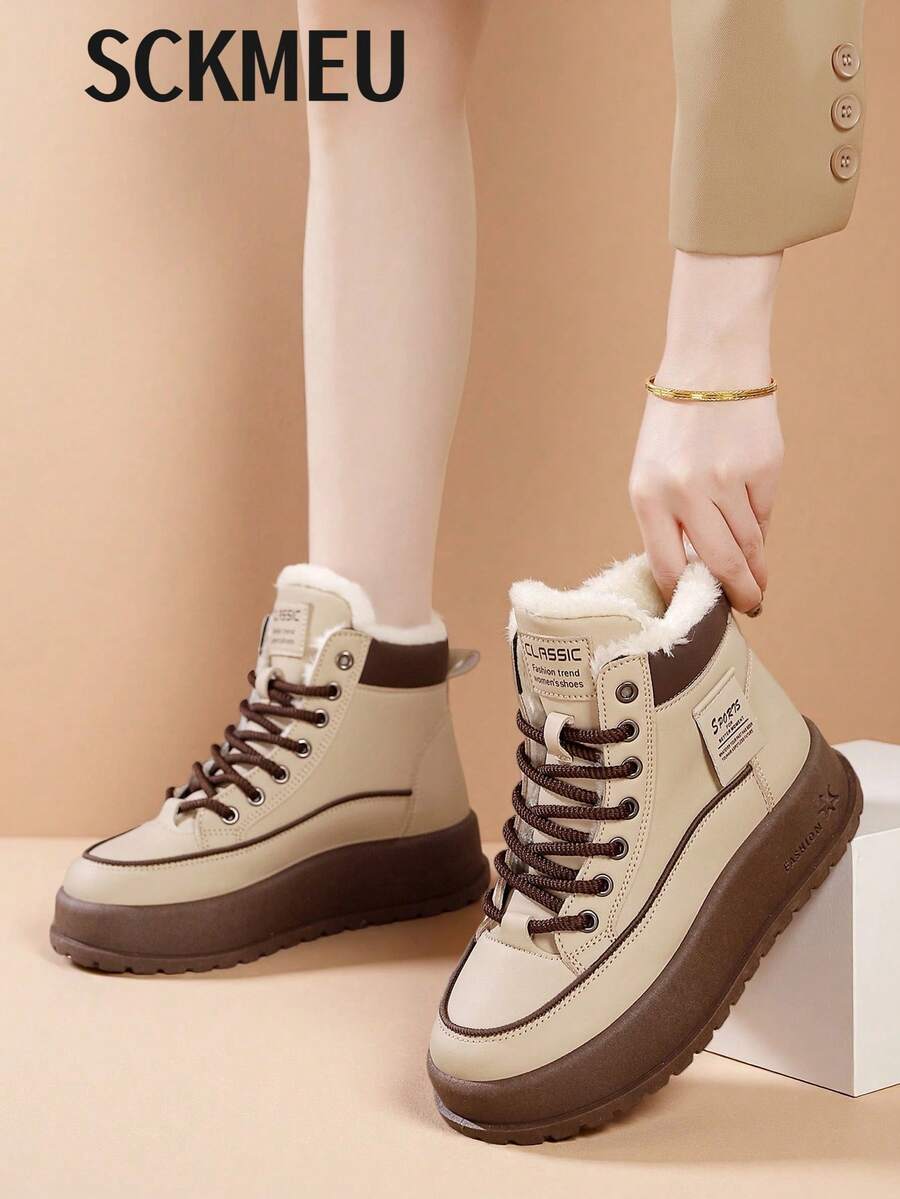 SCKMEU 1 Paar 2025 Winter Neue Vielseitige Modische Dicksohlige Leichte Schneestiefel, Damen Plüsch Dicksohlige Hohe Schuhe