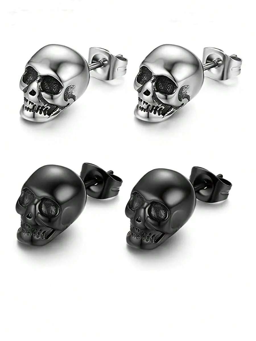 1 Paar Schaurige Schädel Ohrstecker Für Herren Und Damen, Vintage Streetwear, Edelstahl Posten, Zinklegierung Schmuck Geschenk
