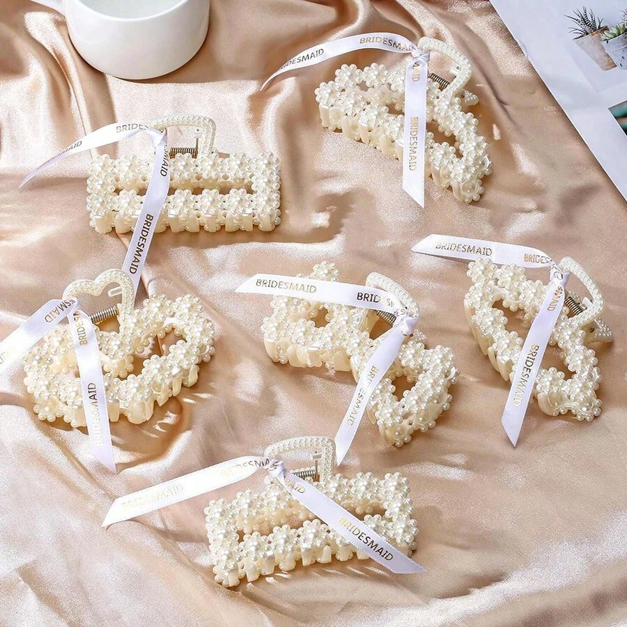 1/4/6 Stücke zufällige Styles Brautjungfern-Vorschlag-Geschenke Perlen Brautjungfern Haarklammern 9,5 cm große Haarklammern Junggesellinnen-Abschiedsparty Geschenke Brautparty Geschenke Haarzubehör, Kunstperle Brautjungfern Haarzubehör für Brautjungfern Vorschlag Geschenke (ohne Band)