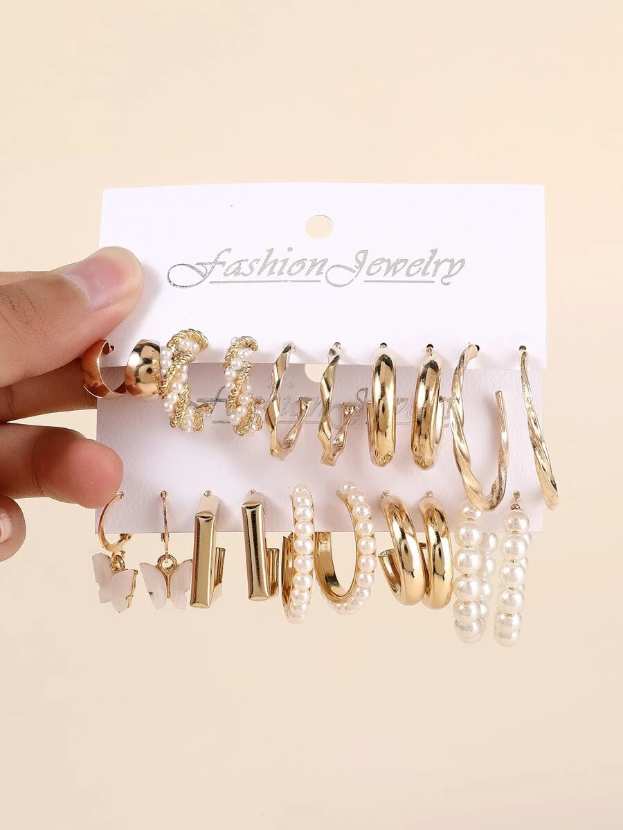 10 Paare Schmetterlings-geometrie-ohrringe Mit Imitiertem Perlen Dekor