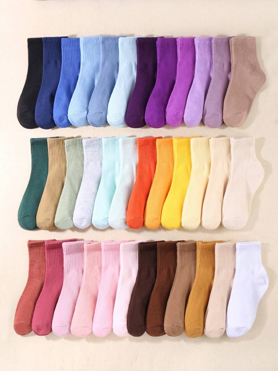 10 Paare Kinder Herbst/Winter einfache, zufällige Bonbon Farben, hochelastische Socken bis zur Mitte des Knöchels