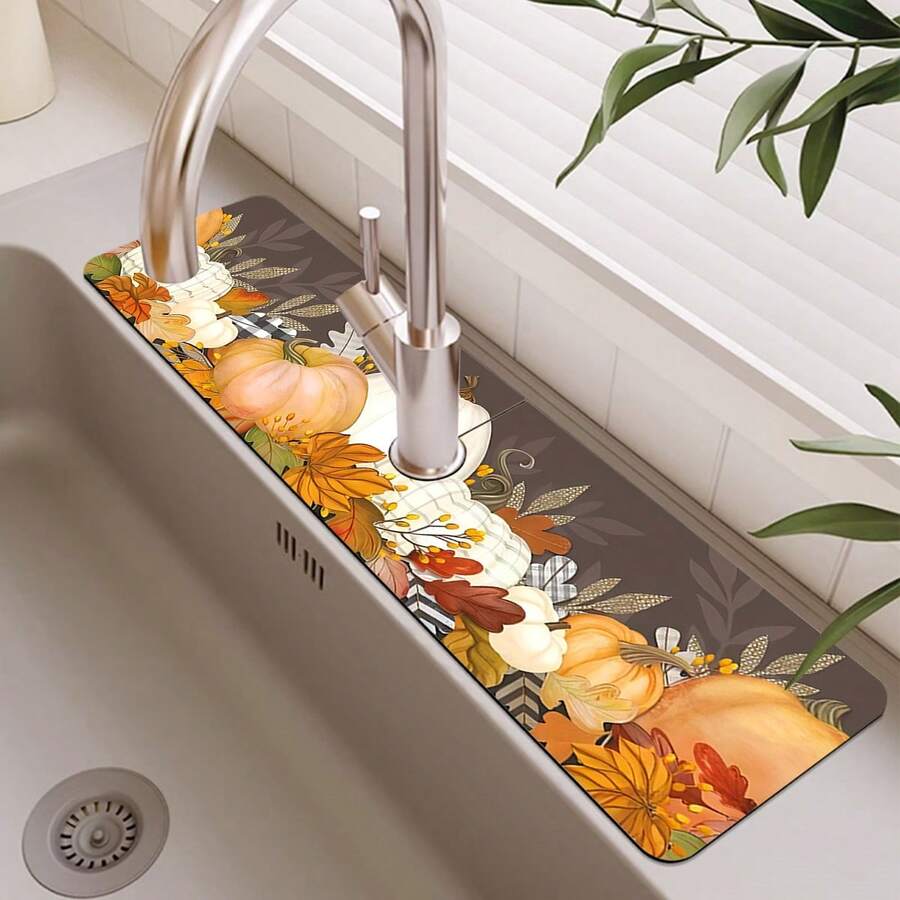1 Stück Herbst Ernte Festival, Kürbis wassersparende Ausguss-Abtropfmatte, Tischset, Badezimmer Diatom-Schlamm Absorptionsmatte, rutschfeste und schimmelresistente Arbeitsplatten-Matte für den Haushalt.