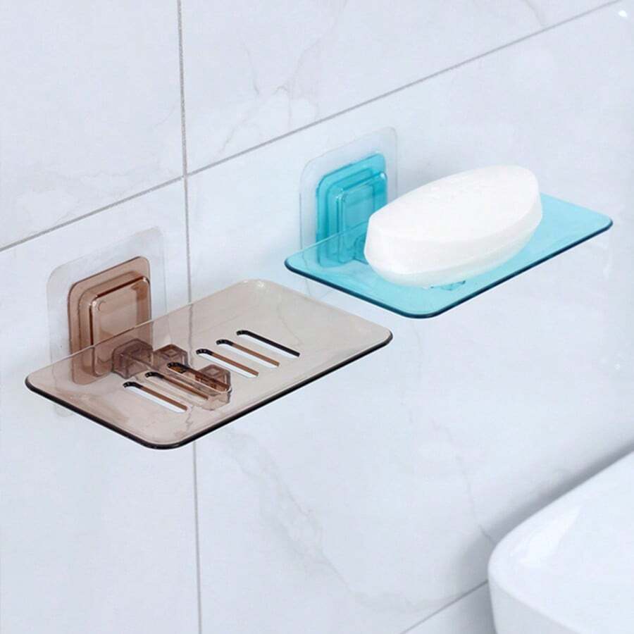VFRYP 1 Stück durchsichtiger, selbstklebender, wandmontierter Seifenschalenhalter aus Kunststoff ohne Bohren für das Badezimmer