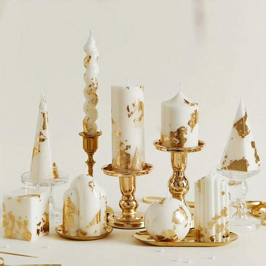 1 Stück handgefertigte goldfoliierte weiße Kerze, geruchlos & rauchfrei, künstlerisch & hochwertig, aus Sojawachs hergestellt, geeignet für Heimdekoration, Geschenke, Vatertag, Thanksgiving, Geburtstagsfeiern, kann 40 Stunden brennen, Größe und Platzierung der Goldfolie können variieren, zufällig versendet