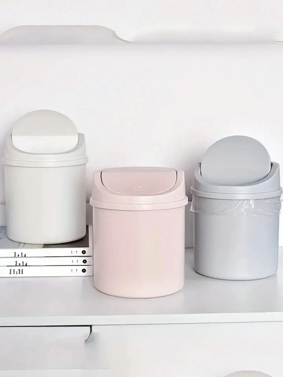 1 Stück Mini Mülleimer, abgedeckter kleiner Abfalleimer, Schreibtisch Mülleimer, Plastik Schreibtisch Papierkorb, Schwingdeckel Design um Geruchsaustritt zu verhindern, zum Aufbewahren von Obstschalen und Papierschnipseln auf dem Schreibtisch zum Aufräumen, für Badezimmer, Büro Schreibtisch Dekoration, Couchtisch, Büro, Wohnzimmer, Arbeitszimmer