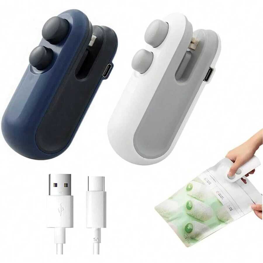 1 Stück Mini wiederaufladbare 2-in-1 Beutelversiegelung mit Schneidklinge, Kunststoffbeutel Heißsiegelgerät zum Frischhalten von Lebensmitteln, kleine elektrische Vakuumversiegelerin, USB-Ladeversiegelerin für Lebensmittellagerung