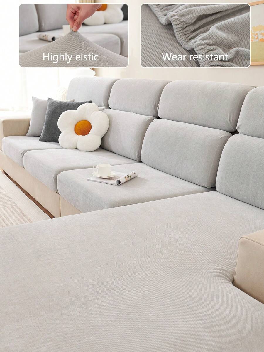 1 Stück Stretch Sofabezug, rutschfeste Vollabdeckung Sofa Sitzbezug, Chenille Stoff Allwetter Sofa Kissenbezug, dicker Sofa Überwurf, maschinenwaschbar, staubdicht, tierfreundlich, dekorativ, verstellbar für Ecksofa, Schlafzimmer, Büro, Wohnzimmer 1/2/3/4 Sitzer