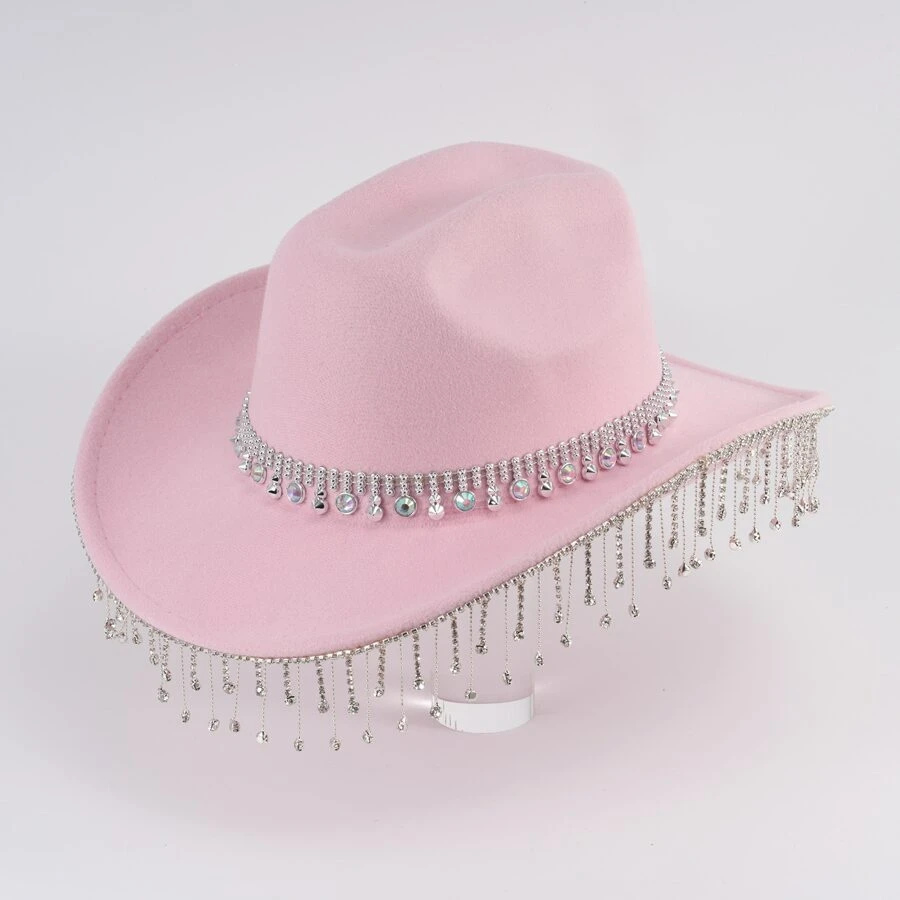 1 Stück Western Stil Cowboyhut mit Quasten und Strass-Details für Partys, Jazz Cowboyhut Cowgirl Hut Halloween