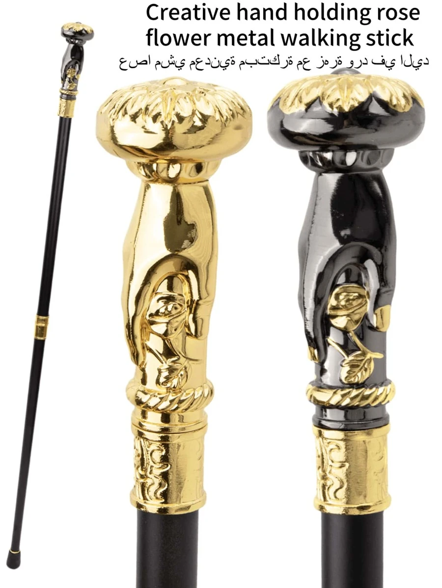 1 Stück sehr eleganter Gehstock mit kreativ Rosen haltender Hand, für den Außenbereich, zerlegbar, Metallstock, Halloween-Requisite, Weihnachtscharakterfiguren, Tanz-Aufführungen, gepflegter Stock, eleganter hochwertig britischer Gentleman-Gehstock, geeignet für den täglichen Gebrauch und ein toller Valentinstaggeschenk für Schule