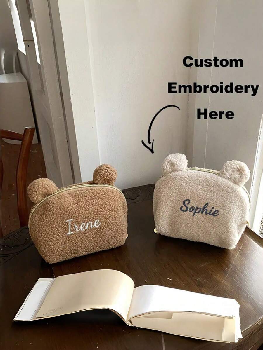 1 Stück personalisierte Damen Plüsch Kosmetiktasche, weicher Reißverschluss Make-up Beutel, Reise Kulturtasche mit großer Kapazität, tragbare Make-up Aufbewahrungsorganizer, Organizer für tägliche Notwendigkeiten, Geschenk und Reiseessentiell