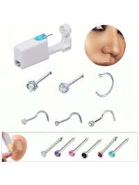 5 Stück/Set steriles Nasen-Piercing-Set, Einweg-Nasen-Stud-Pistole mit geringem Schmerz, (Zubehör für manuelle Installation, nicht zerbrochen), enthält rosa/weiß/schwarz/lila/türkis/rote 20G Edelstahl-Nasen-Stecker (5 Stile: Schmetterling, Kegel, Scheibe, rund), Piercing-Schönheitstools & Zubehör geeignet für Männer, Frauen, Studenten #4 Bestseller