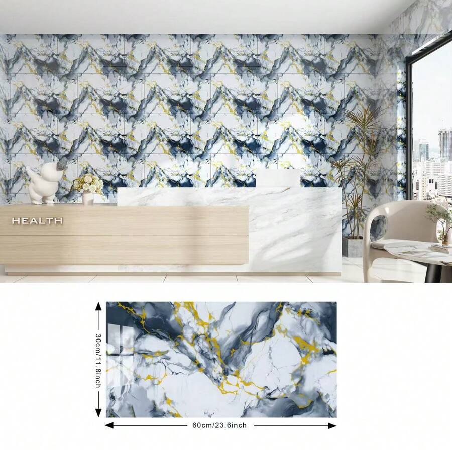 20 Stücke weiße Marmorfliesen Wandaufkleber, einfach anzubringen und abzulösen, wasserfeste selbstklebende Paneele für Küche, Wohnzimmer, Badezimmer, Flur, Zuhause und Dormitorium, 23.62*11.8in