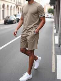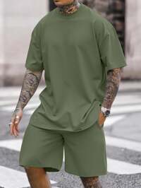 Manfinity CasualCoolManfinity CasualCool Herren Lässig Mode einfarbiges Kurzarm Rundhals T-Shirt und Shorts mit Kordelzug, Herren Sommerkleidung, geeignet für Frühling und Sommer. Geeignet für den täglichen Gebrauch, Ausgehen, Urlaub, Pendeln, Partys, Treffen mit Freunden. Kann als Geschenk für Familie, Freunde, Freund, Ehemann, Vater verwendet werden. Herren Lässig Bekleidung Herren Zweiteiler Herren Shorts Set Sommer Herren Sets, gemütliche Outfits #7 Bestseller
