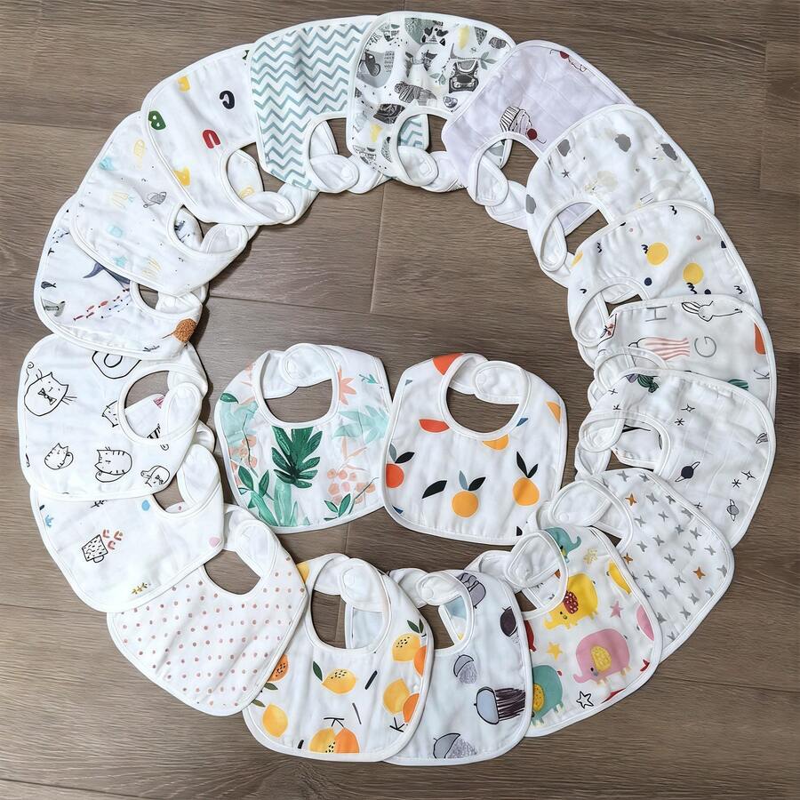 5 Stück/10 Stück Kinder Baumwoll-Mull Lätzchen, Baby Sabberlatz, süße Designs geeignet für Mädchen und Jungen (zufällige Muster)