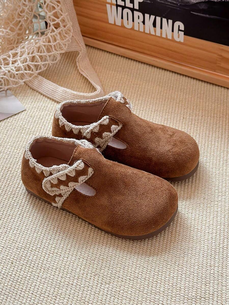 Ein Paar Mädchen-Stil gewebte dekorative Wildleder-Schuhe mit Schnallen, Niedriger Schaft, flach und im Retro-Stil, geeignet für den täglichen Gebrauch und leichte gesellige Anlässe