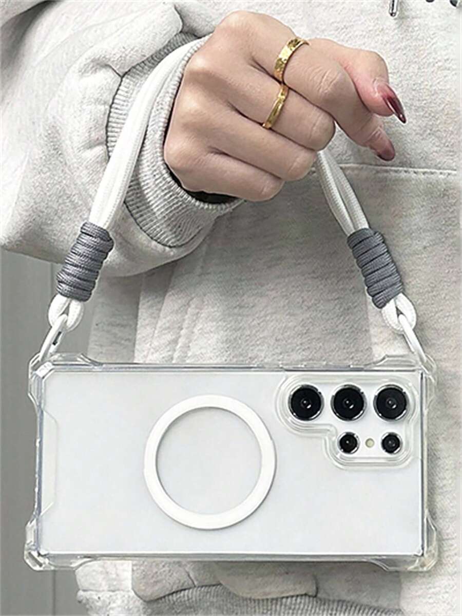 Sturzsichere, magnetische, kabellose Ladehandyhülle mit Lanyard-Seil kompatibel mit Samsung Galaxy S25 S24 S23 S22 Ultra Plus A55 5G, Luxus transparente Vier-Ecken-Fallschutz-Rückabdeckung