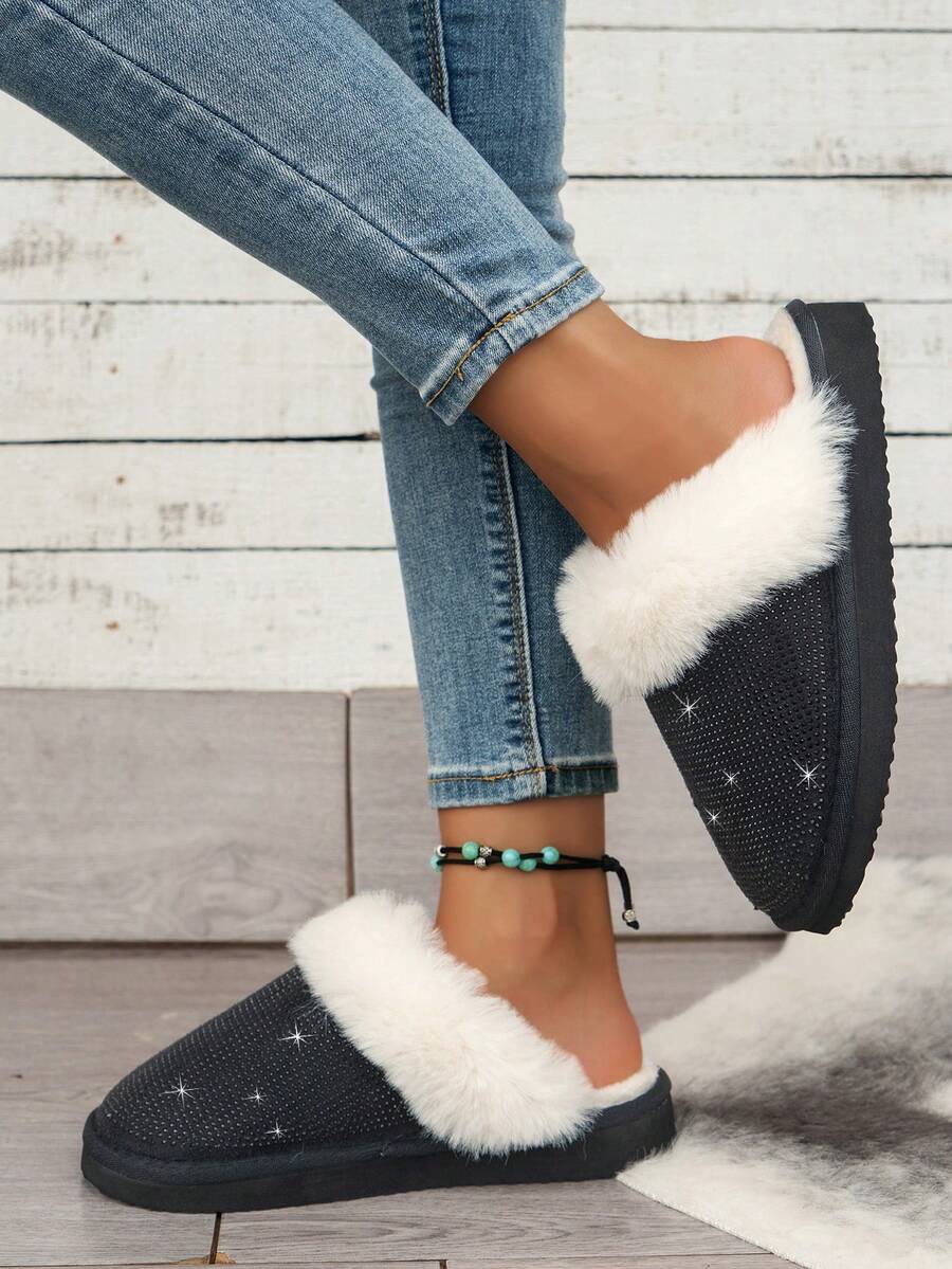 Herbst/Winter Mode einfache vielseitige Lässig Slip-On Plüsch Hausschuhe, weiche warme Fütterung leise dicke Sohle Innen Mittelabsatz geschlossene Zehe Hausschuhe für Teenager Mädchen