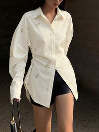 Firerie Damen Blau-Weiß gestreiftes Langarmhemd, Hemd mit Bindegürtel, lässiges Pendlerhemd, Urlaubshemd, tailliertes gestreiftes Hemd, geeignet für Frühling, Sommer, Herbst und Winter, elegant, Urlaub, Boho, Bürokleidung #2 Bestseller