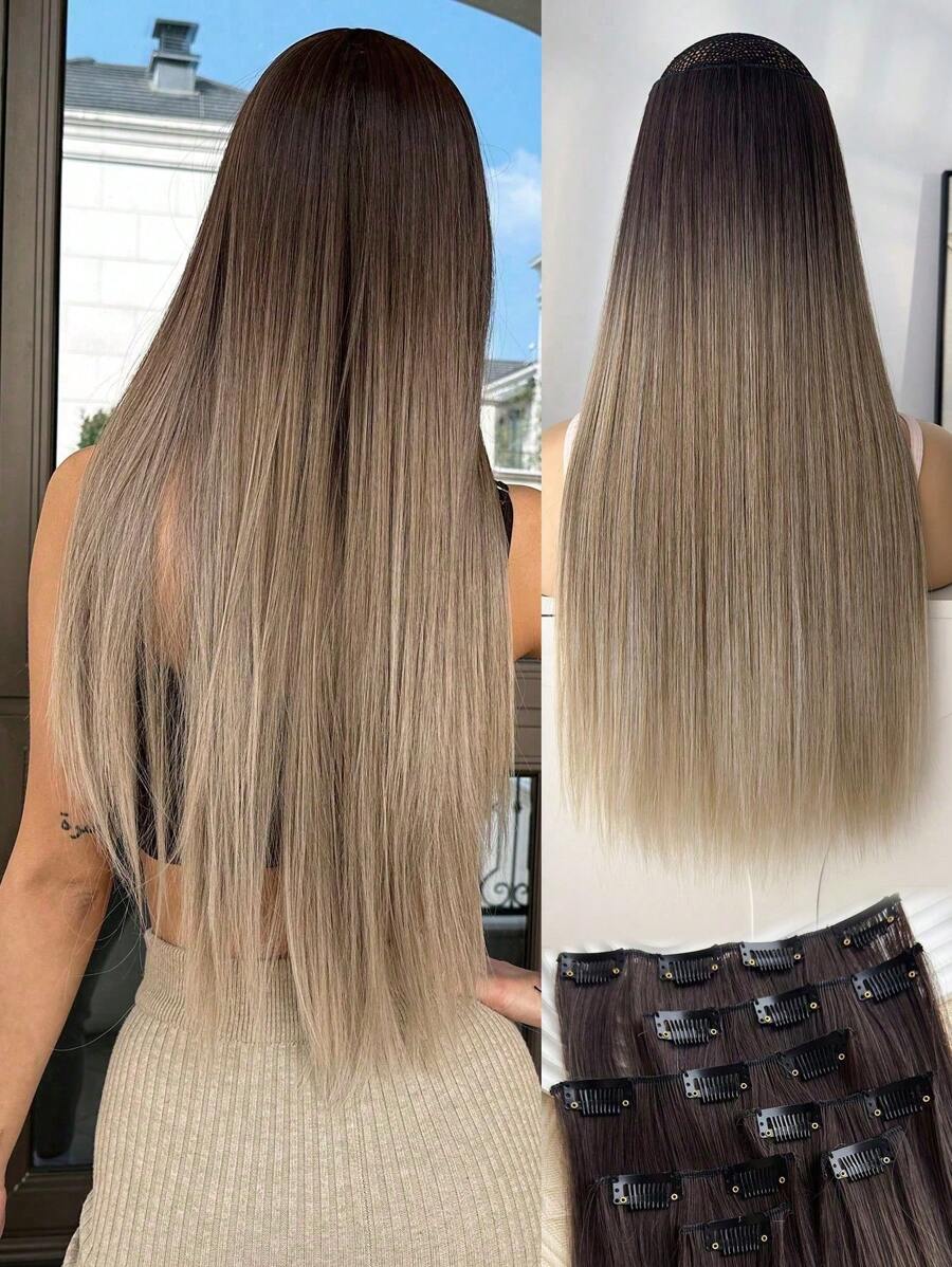 Clip In Haarverlängerungen 7-teiliges Set Farbverlauf 22 Zoll lang, gerades synthetisches Haar Verlängerungen Haarteile für Frauen