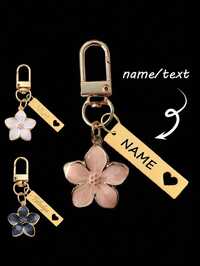 1 Stück personalisierter Metall Kirschblüten Schlüsselanhänger, individualisierter Edelstahl Schlüsselring, graviert, Mode, Vintage, schlicht, Stil, Herbstmode, unisex, leicht und elegant Kirschblüten Design mit Anhänger, geeignet für Tasche, Auto-Schlüssel, Paar- & Urlaubsgeschenke, zarte Romantik