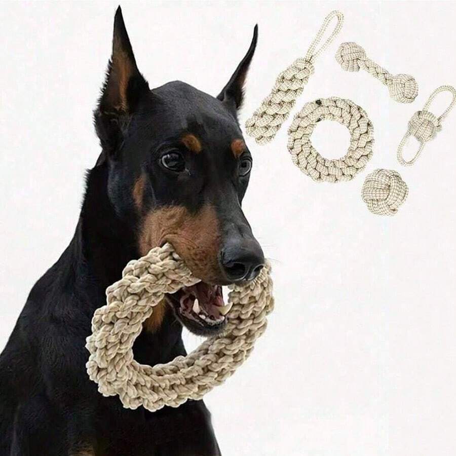 Strapazierfähiges Seil Hundespielzeug - Verdrehter Ringdesign für Zahnreinigung & Spielspaß, ideal für mittelgroße bis große Rassen, sortierte Farben, Hundespielzeug für aggressive Kauer