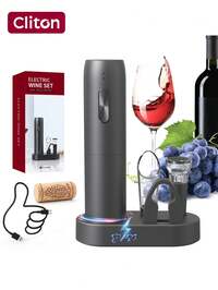 CLITONCLITON Weinöffner, Weinflaschenöffner, elektrischer Weinflaschenöffner, batteriebetriebener automatischer Weinkorkenzieher für Weinliebhaber, Geschenk für Frauen und Männer (schwarz) Elektrischer Weinöffner, batteriebetriebener Korkenzieher, Weinflaschenöffner mit Folienschneider und LED-Licht, wiederverwendbarer automatischer Weinentferner aus Edelstahl für Weinliebhaber, Zuhause, Küche, Party #5 Bestseller