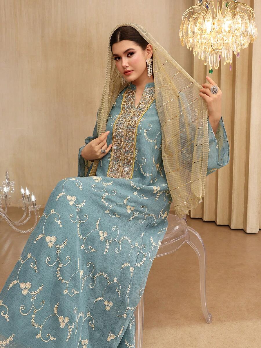 Layrah Elegantes Kleid mit Blumenstickerei und Glockenärmeln, Frühling/Sommer