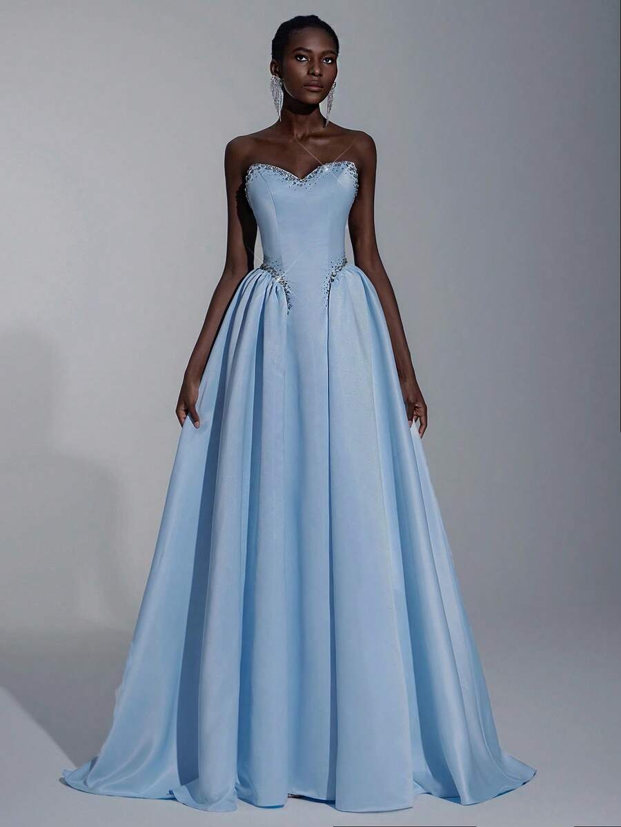 Elitara Elegantes gestricktes Patchwork-Satin-Bustier-Baskenrock mit Taillenbund, luxuriöser 3D-Strass, superweiter A-Linie-Rock mit verstellbarem Rückenbindung, geeignet für Date, Party, Hochzeit, Urlaub, Schulanfang, formelle Gala