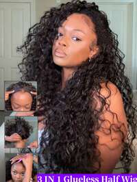 ISEE HAIR BEAUTY Perruque mi-longue ISEE, cheveux humains, perruque mi-longue sans colle, perruque mi-longue 3-en-1 améliorée avec cordon de serrage, clip-in sans couture, réversible, bouclée volumineuse, cheveux humains, sans colle ni dentelle, densité de 180%, 14-28 pouces #1 BEST-SELLERS