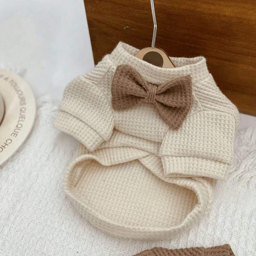 INS Stil Haustier Waffel Strick Schleife Pullover, warme Strickware für Hunde & Katzen, süße Haustier Bekleidung für Herbst/Winter