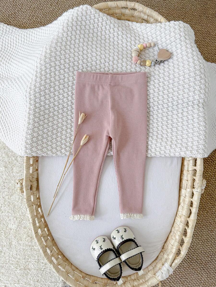 Baby Mädchen Lässig Einfarbig Spitzenbesatz Elastischer Bund Gestreift Leggings
