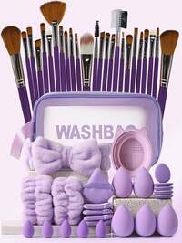 41 Stücke Professionelles Make-up Tool-Set, Großes Kapazität Make-up Tasche-Set, enthält: 1 Make-up Tasche, 20 Make-up Pinsel, 1 Stirnband, 2 Armbänder, 4 Wassertropfen Make-up Schwämme, 4 Dreieck-Puderquasten, 4 Mini-Wassertropfen Make-up Schwämme, 4 Mini-Finger-Make-up Quasten, 1 Reinigungswerkzeug, geeignet für flüssiges Make-up, Puder und Concealer, Reise-Make-up Pinsel-Set mit großer Kapazität Tasche, Weihnachtsgeschenke, Geschenkideen für Frauen