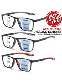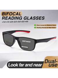 XINGYU Flagship StoreRIVSAR Bifokale Lesebrille für Damen und Herren, neuer klassischer quadratischer Stil mit Farbblockdesign, geeignet zum Lesen, für Büro und Alltag, unisex Gleitsichtbrille, Federscharniere mit quadratischem Rahmen, geeignet für rutschfesten Sport, Blaulichtfilter für Computer, komfortables Lesen, augenentlastend, portalbles Design für verschiedene Gesichtsformen, schwarz, grau, 7 Dioptrien-Optionen, tolles Geschenk für Eltern, Urlaubsgeschenk, Geschenkverpackung
