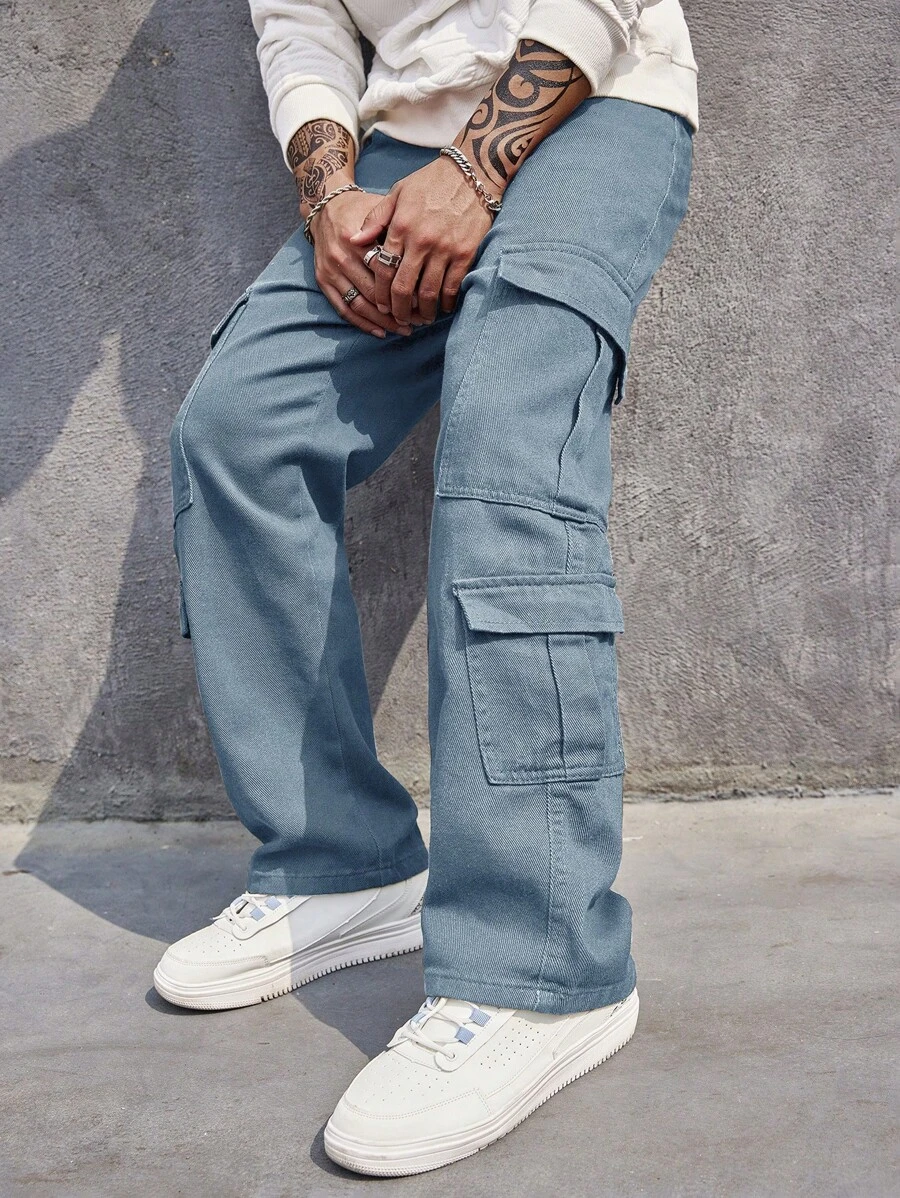 Herren Jeans-Optik Stretch Cargo Cargohose, gerades Bein