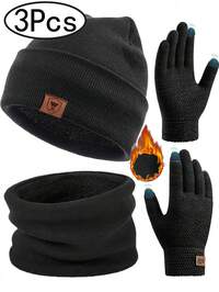 1-3 Stück/Set Herren Winter Gestrickte Mütze, Schal, Touchscreen Handschuhe Set, warm gefüttert, Argyle & Schneeflocken Jacquard Muster, geeignet für Skifahren, Reisen, Radfahren, Autofahren, Geschenk für Männer, Winteraccessoires für den täglichen Gebrauch