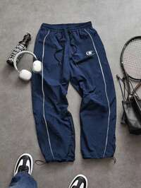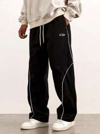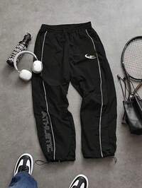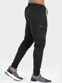 Manfinity Sport Corelite Herren Jogginghose mit Kordelzug in Taille, weite Passform, lässig, mit Buchstaben-Muster, atmungsaktiv, feuchtigkeitsableitend, leicht, bequem, weites Bein, minimalistisches Design, schlank geschnitten für Training und Fitnessstudio