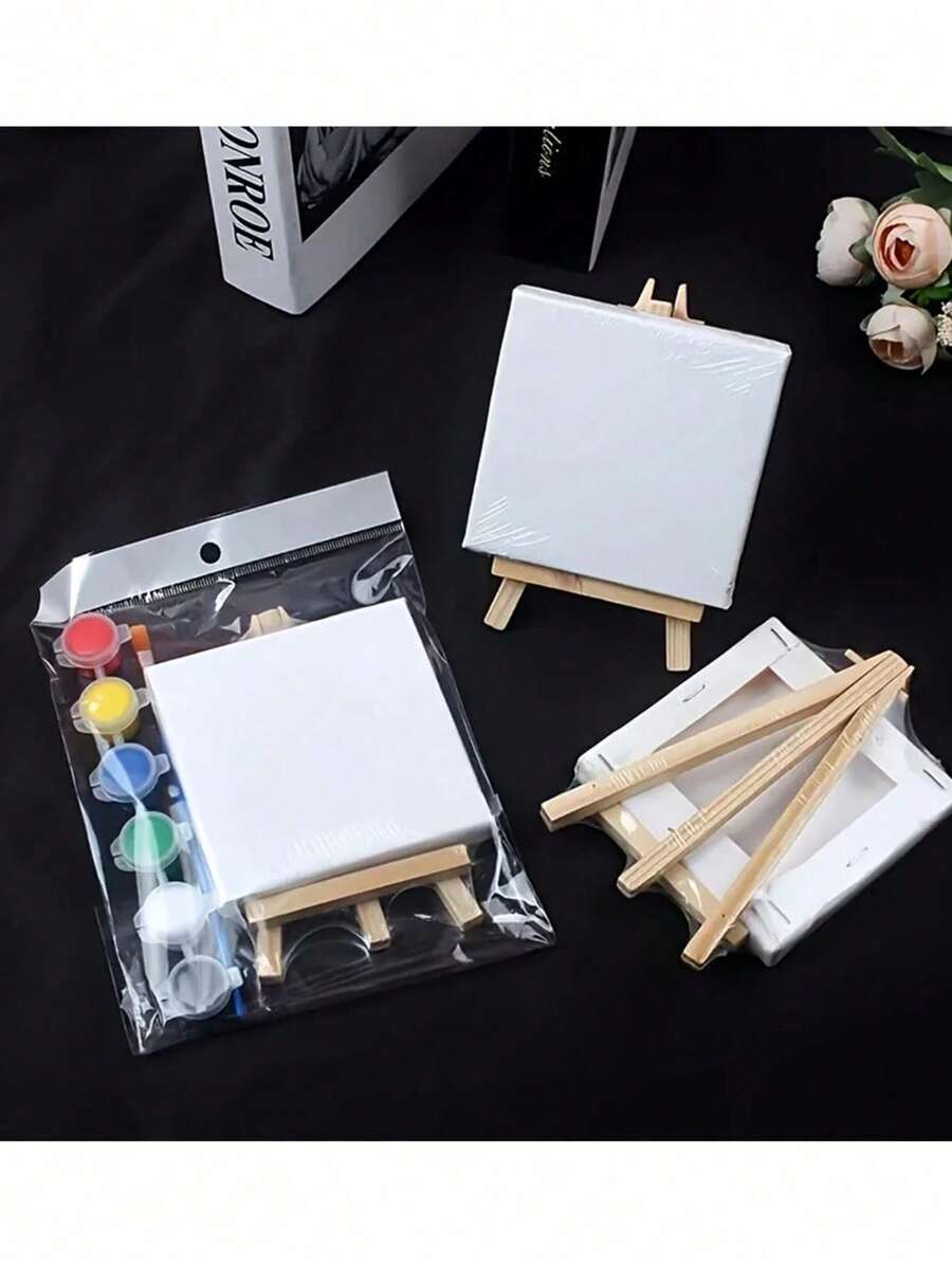 Mini Stretch Leinwand Acrylfarben Set in sechs Farben, ausgestattet mit Staffelei und Farbpalette - DIY Kunst und Handwerkskunst, geeignet zum Malen und Zeichnen, inklusive Leinwand und Pinsel, Familienspiele, ideal für Abschlussfeiern, Abschlussgeschenke, Geburtstagsgeschenke, Geschenke zur Abschlusszeit, Lernmaterialien, Schulsachen, Rückkehr zur Schule Zubehör