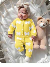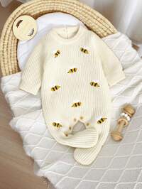 LullasweetSHEIN 1 Stück Strick-Strampler für Neugeborene, Rundhalsausschnitt, lange Ärmel, süße Bienenstickerei, minimalistischer Overall, Baby-Strickoutfit, Neugeborenenpullover, Strampler, Bienen-Baby-Mädchen-Outfit, gelbes Neugeborenen-Outfit, Baby-Strick-Strampler, natürliche Babykleidung für Neugeborene