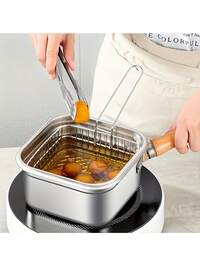 Edelstahl Quadratische Bratpfanne, Haushalts Milchtopf Nudelkocher, Tragbare Outdoor Tempura Fritteuse, Kompatibel mit gängigen Herden, zum Kochen, Suppe halten, Speisen servieren