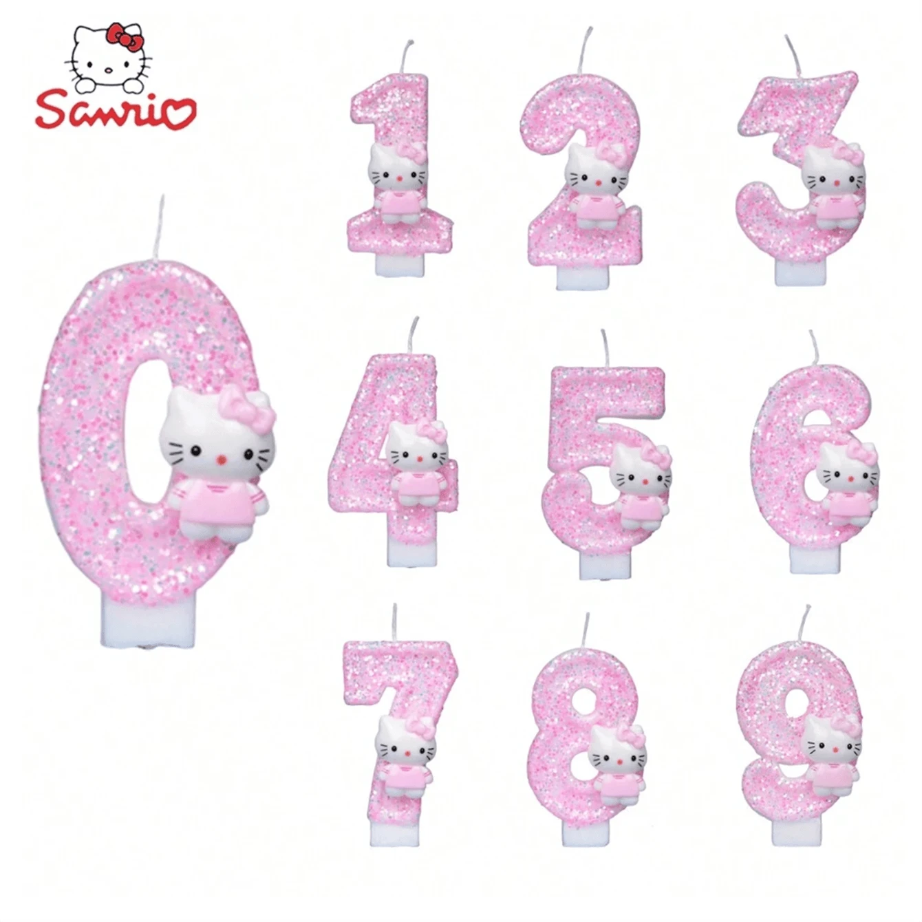 Sanrio 1 Stück Sanrio Comic Hello Kitty Geburtstagkerze, katzenförmige Zahlenkerze, Rosa, mädchenhafte Kuchendekoration Kerze, bezaubernde und süße herzförmige romantische Dinner Kerze, Valentinstag Kuchendekoration, Hochzeit