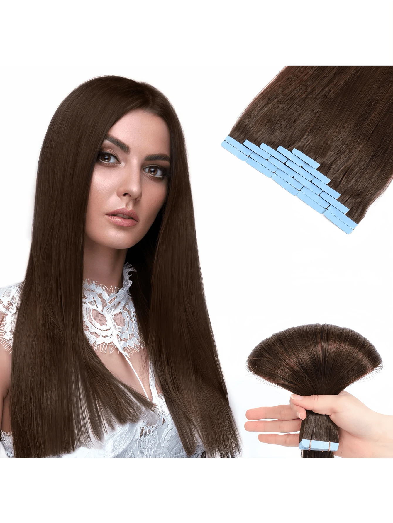 Nahtlose Tape-In Haarverlängerungen aus Echthaar, gerade Verlängerungen mit Hautgewebe-Klebstoff, Salonqualität für Frauen, 20 Stück/30g, Halloweenkostüme