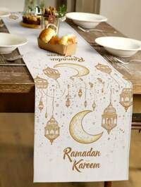1/4/5/6/7 Stücke Kalligraphie Kunst Ramadan Dekorationsset, bequeme Leinen Ramadan Tischdecke, Eid Mubarak Tischdecke, geeignet für Ramadan, Eid Al Fitr Party Essensdekoration, verschiedene Größen, Islamische Ramadan Eid Festival Party Zubehör, Feiertags Tischläufer, Ramadan Heimdekoration, Ramadan Kareem, Ramadan Mubarak