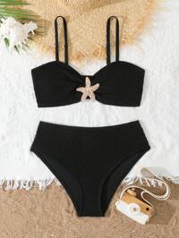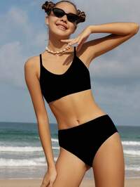 Play ParadeSHEIN Bikini-Sets für Teenager-Mädchen, schwarzer einfarbiger Strickstoff, verstellbare Träger, V-Ausschnitt, Zweiteiler-Badeanzug, modischer, lässiger, eleganter Damenstil, geeignet für Schwimmen, Sommerurlaub, Strand, Pool, Feiertagsparty Teenager-Badeanzüge 2 Teile Schwarzer bescheidener Zweiteiler-Badeanzug Bescheidener Bikini-Set Bikini-Set für Frauen mit voller Abdeckung Hoher Taillenbikini-Set Sommeroutfit für Frauen Bademode Frühjahr Sommer Auswahl Schwarzer Bikini Schwarze Bademode Bademode für Frauen Schwarze Badeanzüge für Teenager Zweiteiler Damen Sommer 2-teilige Sets Sommeroutfits für Frauen Badeanzug Damen Sommer Co-Ord Zweiteiler-Bademode Badeanzug für Teenager Damenbademode