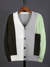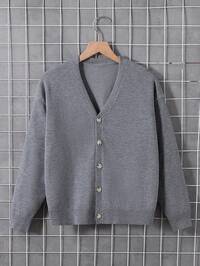 PrepCrwSHEIN 1 Pack Lässiger Sportlicher College Dicker Doppelreihiger Grauer Cardigan Pullover mit Verdrehtem Muster Dekoration für Tween Jungen, geeignet für Kinderoutfits, Kleinkind Tween Jungen Kleidung Rückkehr zur Schule, Tween Jungen Set geeignet für Geburtstagsfeiern, Abendveranstaltungen, Aufführungen, Eröffnungszeremonien, geeignet für den täglichen Gebrauch, geeignet für die Schule, geeignet für Sport, geeignet für Herbst und Winter SHEIN Explorewe Tween Jungen Lässiger, grauer, modischer, bequemer, weicher, schlichter und warmer Pullovermantel im College-Stil mit lockerer Passform und V-Ausschnitt, Kontrastbesatz, langen Ärmeln, Strickjacke. Geeignet für den Alltag, Reisen, Schule, Partys und Outdoor-Aktivitäten im Herbst und Winter.