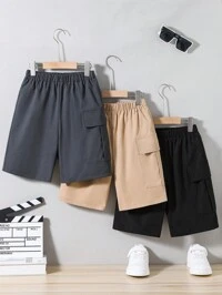 Cozyroamer3-teiliges Set lässige Shorts für Tween-Jungen aus leichtem, farbigem Gewebe, locker, Lässig, einfach, vielseitig, Unifarben, für Sport und Lässig, Mehrteiliges Set, 1 kaufen, 2 gratis, 3 Teile passend für Frühling und Sommer #9 Bestseller