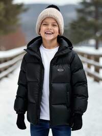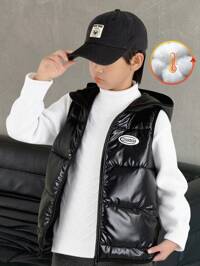 SHEIN Tween Jungen Casual School Style Badge Kontrast Color Block Kapuzenjacke Dicker Cardigan, Geeignet für Schule, Garten, Strand, Geburtstag, Herbst, Frühling, Sommer, Winter, Schwarz, Braun