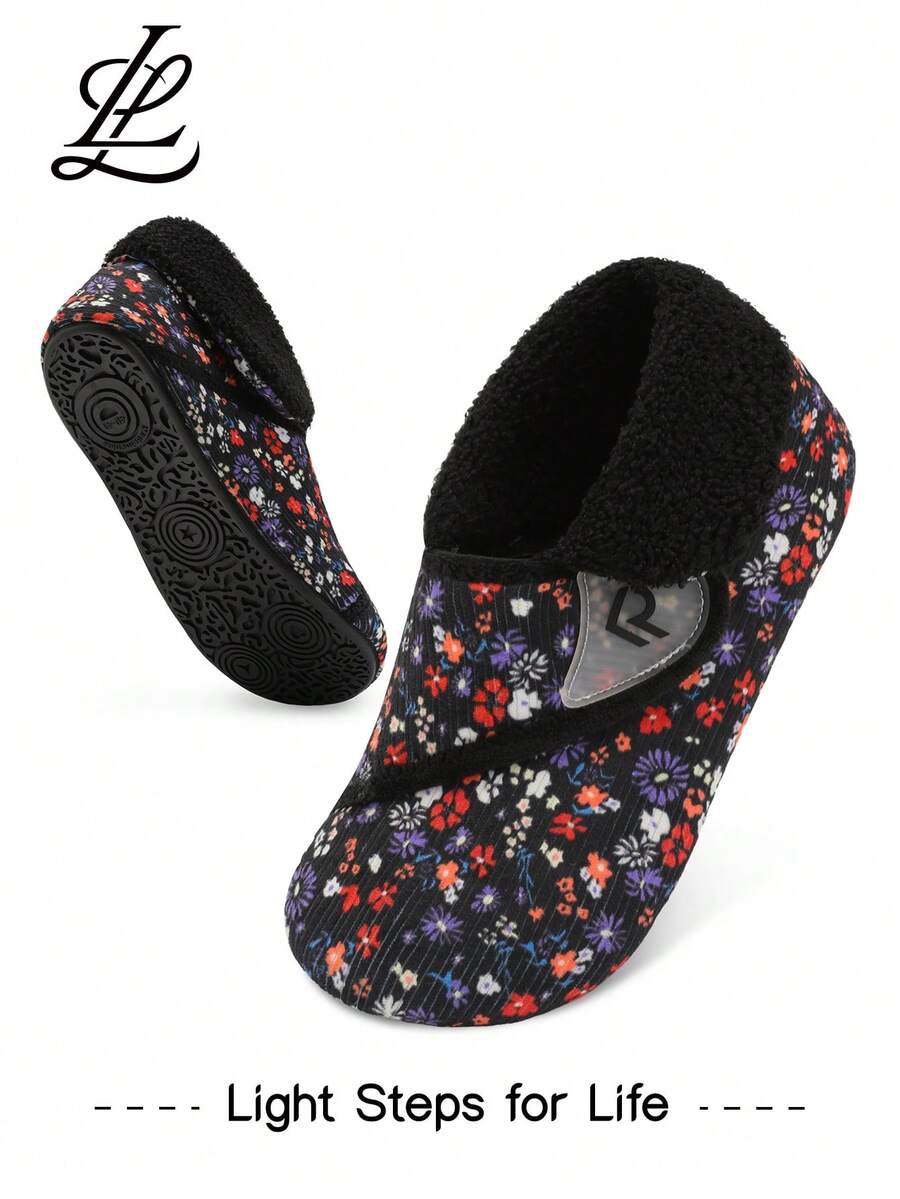Leisfit Damen weiche, flauschige, bequeme und warme Schneestiefel, verstellbare Herren- und Damen-Hausschuhe mit zwei Tragemöglichkeiten, bequem, leicht und maschinenwaschbar, mit rutschfesten Gummisohlen ausgestattet, geeignet für Innen- und Außenbereich