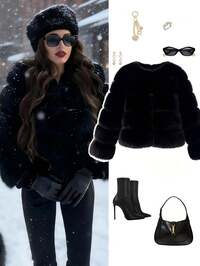 Braune Kunstfell-Jacke für Damen, langärmelig, offene Front, einfarbiger Kragen, flauschige Jacke, locker geschnittene, kurze, lässige Fellouterwear, eleganter und markanter Mantel, geeignet für Herbst, Nachtausgang, Party, Date, Land, Rückkehr zur Schule, Casual, Urlaubsreise Winter #5 Bestseller