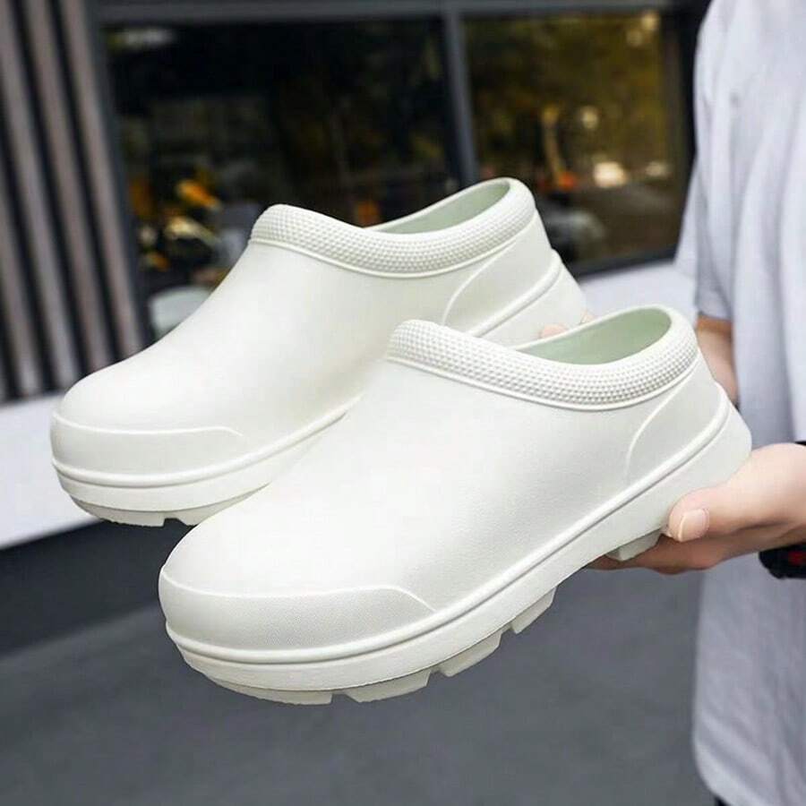 Wasserundurchlässige Chefhosen für Frauen - bequem, rutschfest, ölfest, Slip-On Arbeitsschuhe, hergestellt aus EVA-Material, in den Farben Schwarz und Weiß erhältlich