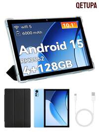 BBTABQetupa 10,1 Zoll Android 15 Tablet mit Lederhülle, 4GB RAM+128GB ROM, RK3562 Quad-Core 1,3GHz Prozessor, HD (1280x800) IPS Touchscreen, 5MP Frontkamera & 13MP Rückkamera, 6000mAh Akku, 802.11ac WLAN 5, BT 5.4, GPS, keine SIM-Karten Unterstützung Qetupa Android 14 Tablet, 10,1-Zoll Bildschirm, MTK 6737 Quad-Core 1,3GHz Prozessor, 4GB RAM + 64GB Speicher, unterstützt 802.11ax WLAN 6, Bluetooth 5.2, Incell HD (1280*800) IPS Touchscreen, 5MP+8MP Dual-Kameras, 6000mAh Akku, Typ-C Schnittstelle